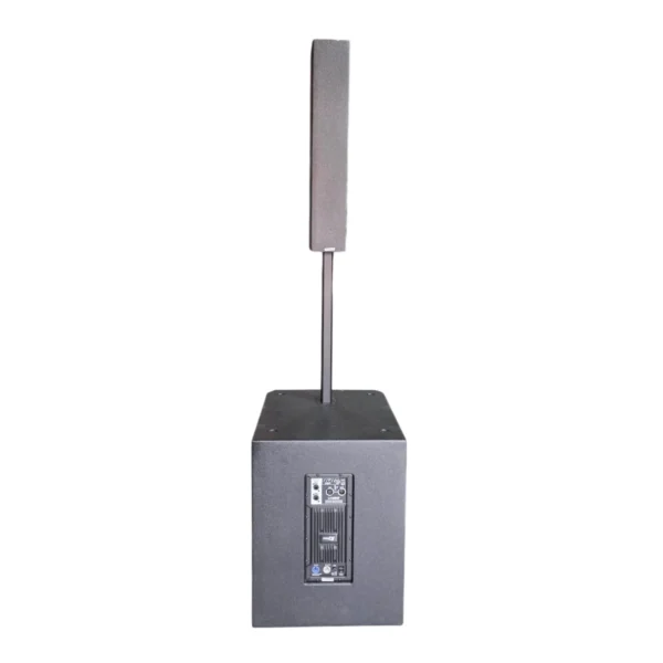 Está fabricado en madera contrachapada de 15 mm y cuenta con un acabado en pintura de poliuretano, lo que garantiza resistencia, durabilidad y una presentación de alta calidad. Incorpora un amplificador clase D con procesador DSP y conectividad Bluetooth, permitiendo una configuración eficiente del sistema y una integración rápida con distintas fuentes de audio.