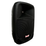 Cabina activa de 10″ con Bluetooth, USB, FM y ecualizador. 100W RMS con entradas XLR/RCA y control remoto. Sonido potente y versátil para cualquier evento.