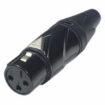 El **Conector XLR Hembra Aéreo PRY XLR402PR** es un conector de alta calidad, diseñado para aplicaciones de audio profesional. Su estructura en **color negro** le proporciona una apariencia elegante y resistente, mientras que sus **terminales dorados** garantizan una excelente conductividad y resistencia a la corrosión. Ideal para micrófonos, cables balanceados y equipos de sonido profesional, este conector asegura una transmisión de señal sin interferencias y con una calidad superior.Características Principales