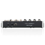 - Salidas: 2 salidas principales TRS, 2 salidas alternas TRS, 1 salida de audífonos 1/4, 1 auxiliar de envío estéreo, 2 salidas RCA (2-Track).