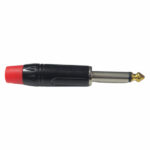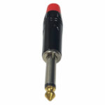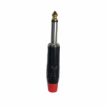 Conector Jack 1/4 PRY PR-240 monofónico negro y rojo con punta dorada para una transmisión de audio confiable y resistente a la corrosión.
